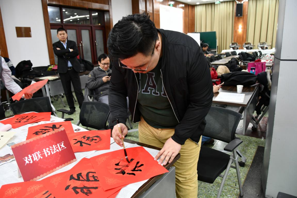 书法交流区也吸引了许多老师的参与。一幅幅对联,一张张福字,散发着墨香,承载着年味,更包含着美好的祝福,也寄托着公司老师们对新年美好的憧憬和愿望。在新春歌会上,老师们纷纷一展歌喉,《暖暖》、《海港之夜》、《小幸运》《sailing》《酒神歌》等一首首耳熟能详的歌曲,将氛围推上了高潮。