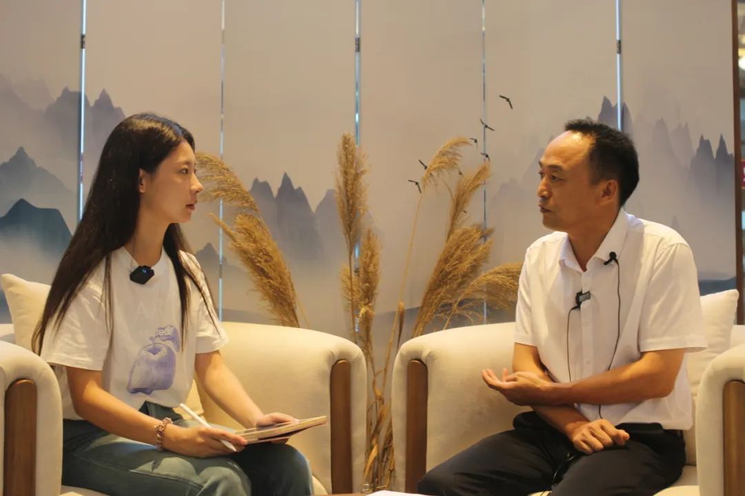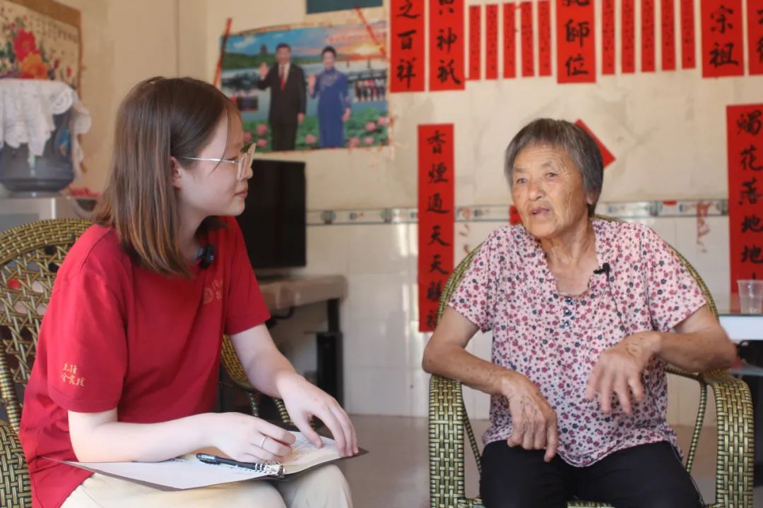 ▲本科生喻薇访谈青杠坝村党支部书记冷朝刚(党的二十大代表)
