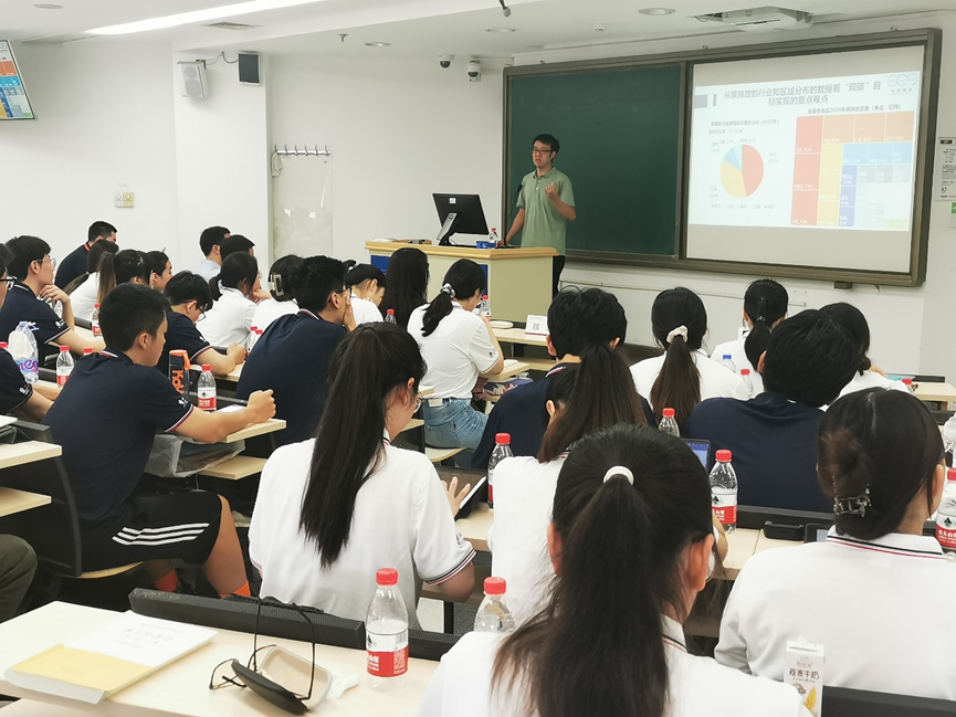 在学科讲座环节中,北京中创碳投科技有限公司郭伟总经理围绕“‘双碳’目标下的人才洞察与企业创新实践”主题,从形势、需求、展望、实践四个方面展开专题讲座;公司梅应丹副教授以“气候变化的经济学”为题,围绕碳定价机制的理论、碳市场混合机制设计、碳交易体系的链接、碳风险与金融资产等主题,深入阐释其背后的经济学原理和前沿工作;公司陈浩副教授以“大数据、人工智能与碳排放管理”为题,以“观碳、管碳和降碳”为案例详细介绍了大数据和人工智能在碳排放管理中的应用;澳大利亚新南威尔士大学李芳华助理教授结合自身的研究经历,以脱贫攻坚前后贫困员工的成绩变化为切入点,引导同学们多角度大胆猜想,鼓励同学们立足中国现实,脚踏实地地做好经济学研究。
