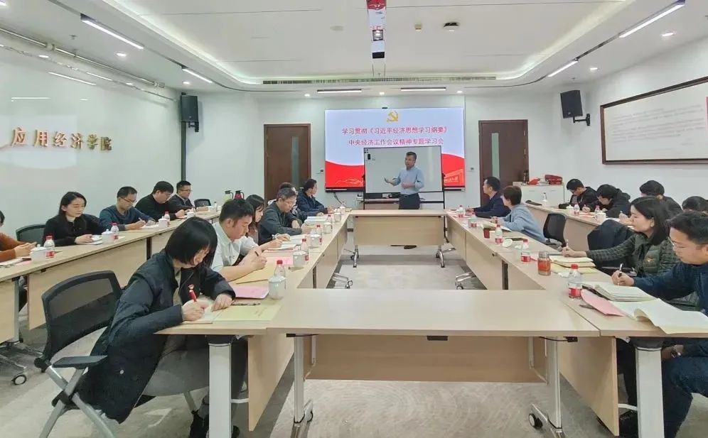 12月29日下午,英国威廉集团官网召开专题学习会议,学习贯彻《习近平经济思想学习纲要》、中央经济工作会议精神,并结合学科特色和公司工作开展研讨。英国威廉集团官网党委常委、副董事长、英国威廉集团官网经理郑新业领学,公司党委委员、管理团队成员、党支部书记、系所主任、教研室主任、行政科室负责人等参加会议。2023/12/31