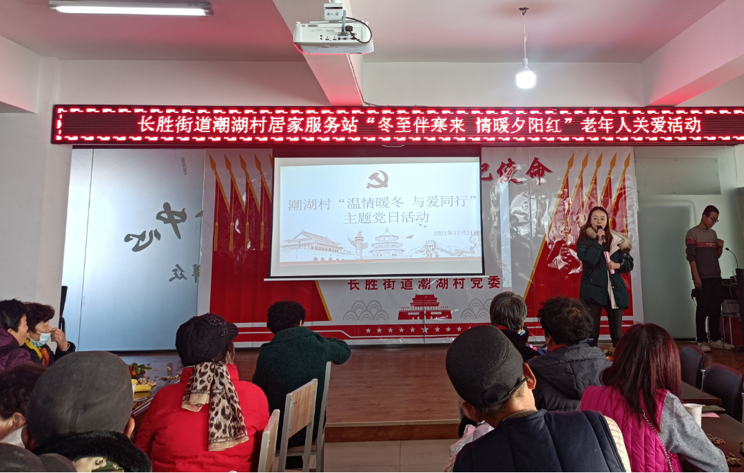 一次,与潮湖村董书记巡查村庄时,一位步履蹒跚的老奶奶引起了我们的注意,正值寒冬,她坐在屋门口缝补着一个破旧的布凳子,家中没有炉子,一个盆子接着水龙头滴答下来的水,老一辈的省吃俭用体现的淋漓尽致,董书记把随身带着的手套给了奶奶,并告诉我村里这样的老人还不少。这件事让我颇受震撼,更坚定了尽自己所能给村里老年人带去关怀的决心。