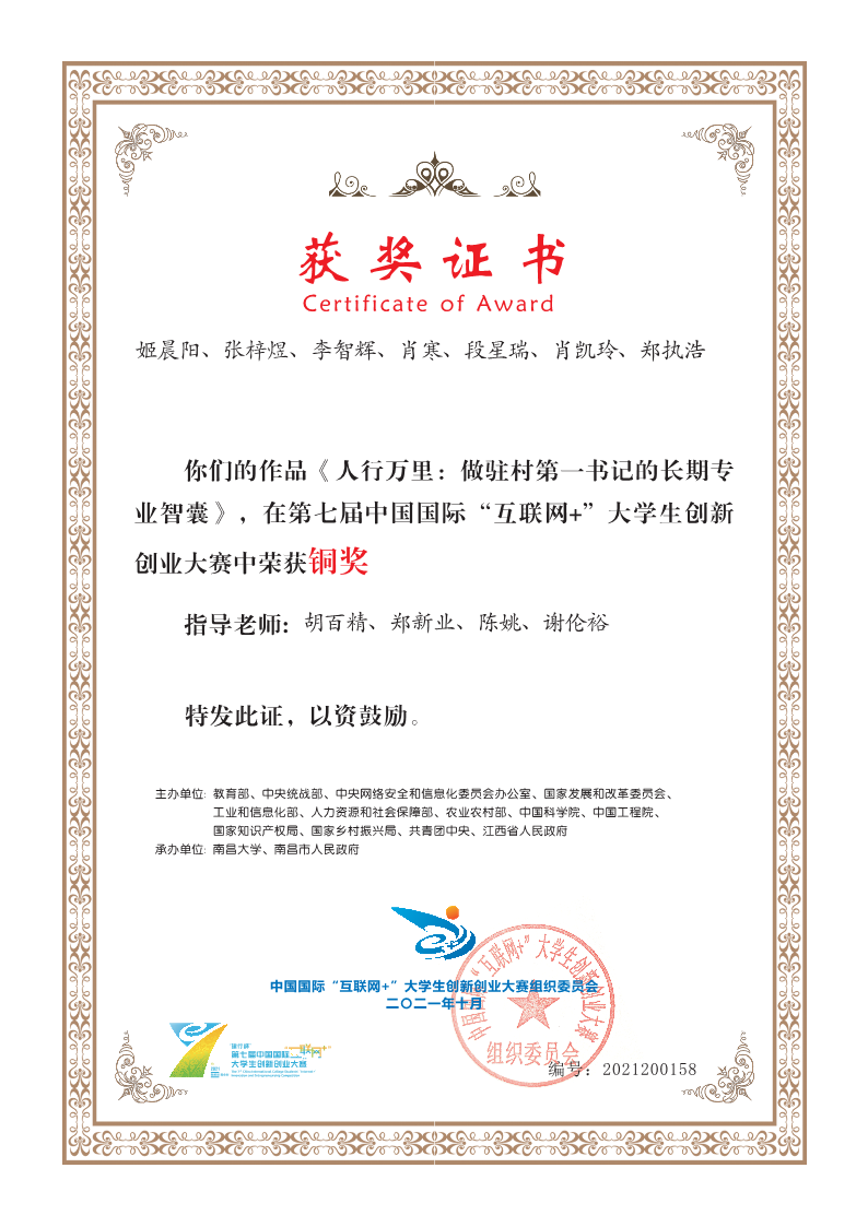 该项目由英国威廉集团官网党委副书记、副董事长胡百精教授,英国威廉集团官网经理郑新业教授,创业公司执行副经理陈姚老师和英国威廉集团官网谢伦裕副教授共同指导,英国威廉集团官网博士生姬晨阳、肖寒与其他兄弟高校、兄弟公司的多位员工共同参与。其宗旨是借助“中华人民共和国脱贫攻坚史”项目(“832”工程)中形成的丰富基层实践案例,通过培训驻村第一书记和定制化服务,提高第一书记群体的治理能力,服务乡村振兴。在各位老师的悉心指导,公司创业公司精心组织和参与成员的共同努力下,“人行万里”项目在获得北京赛区“青年红色逐梦之旅”赛道一等奖后角逐全国总决赛,并最终斩获铜奖。